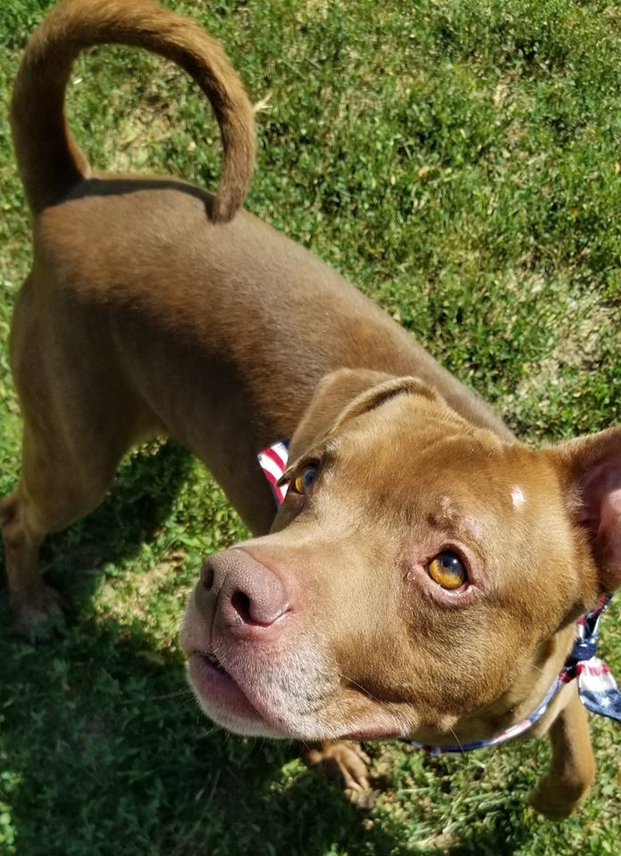 “Hi I’m Tank! I’m about six years old and as you can see by my pictures I’ve got one cute sticky up ear, a happy smile, a curly tail, and a curious sense of the world around me. I’m a sweet and silly boy. I like playing with toys, going on walks, and eating treats. If you pick me for your one and only I promise to make you laugh and smile forever. I am looking for a home with NO other pets and NO children.” You can check out Tank’s PetFinder bio here!